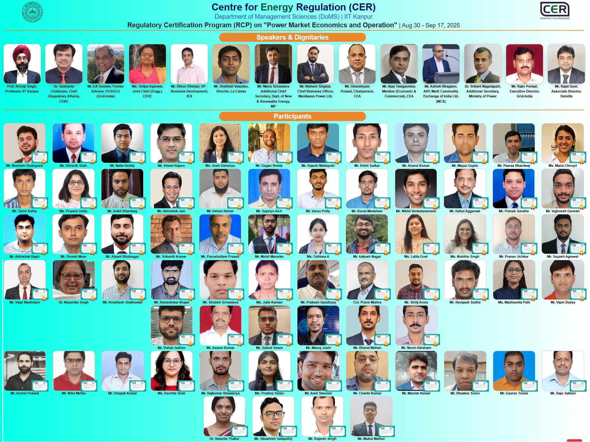 CER organized Power Sector Regulation: Theory and Practice on June 06 - June 22, 2025 at IIT Kanpur